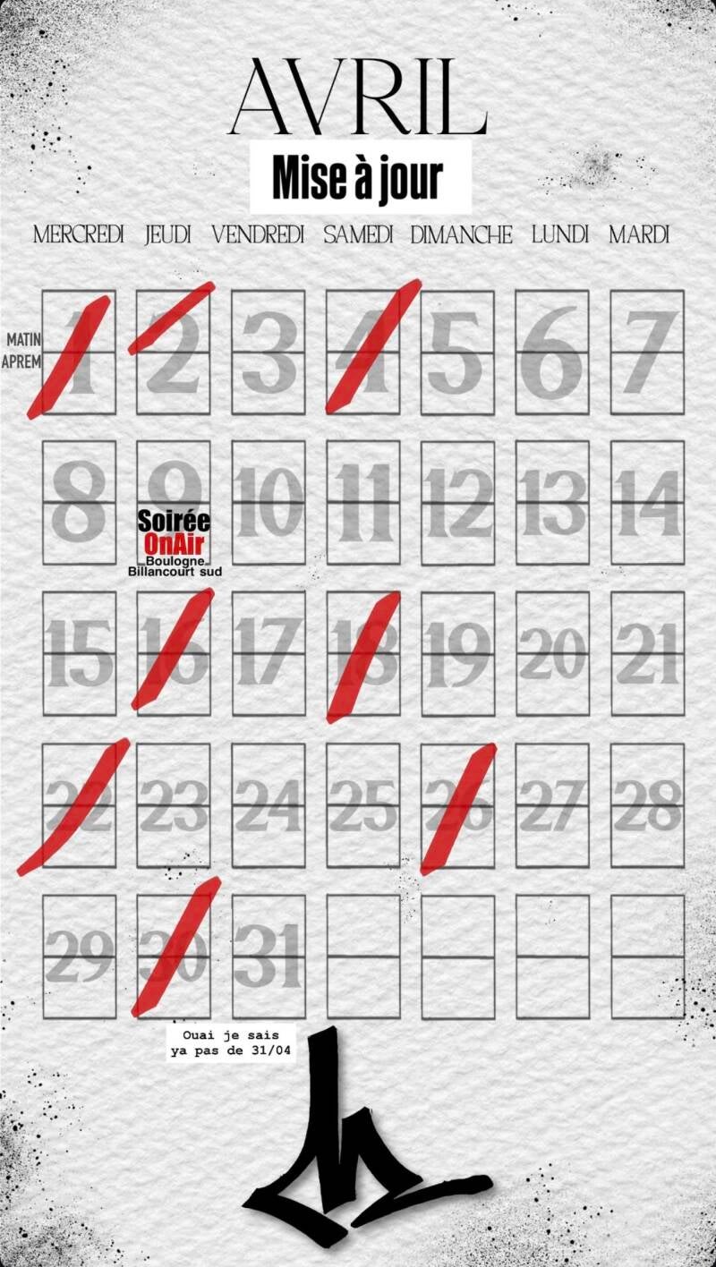 Calendrier du mois d'Avril